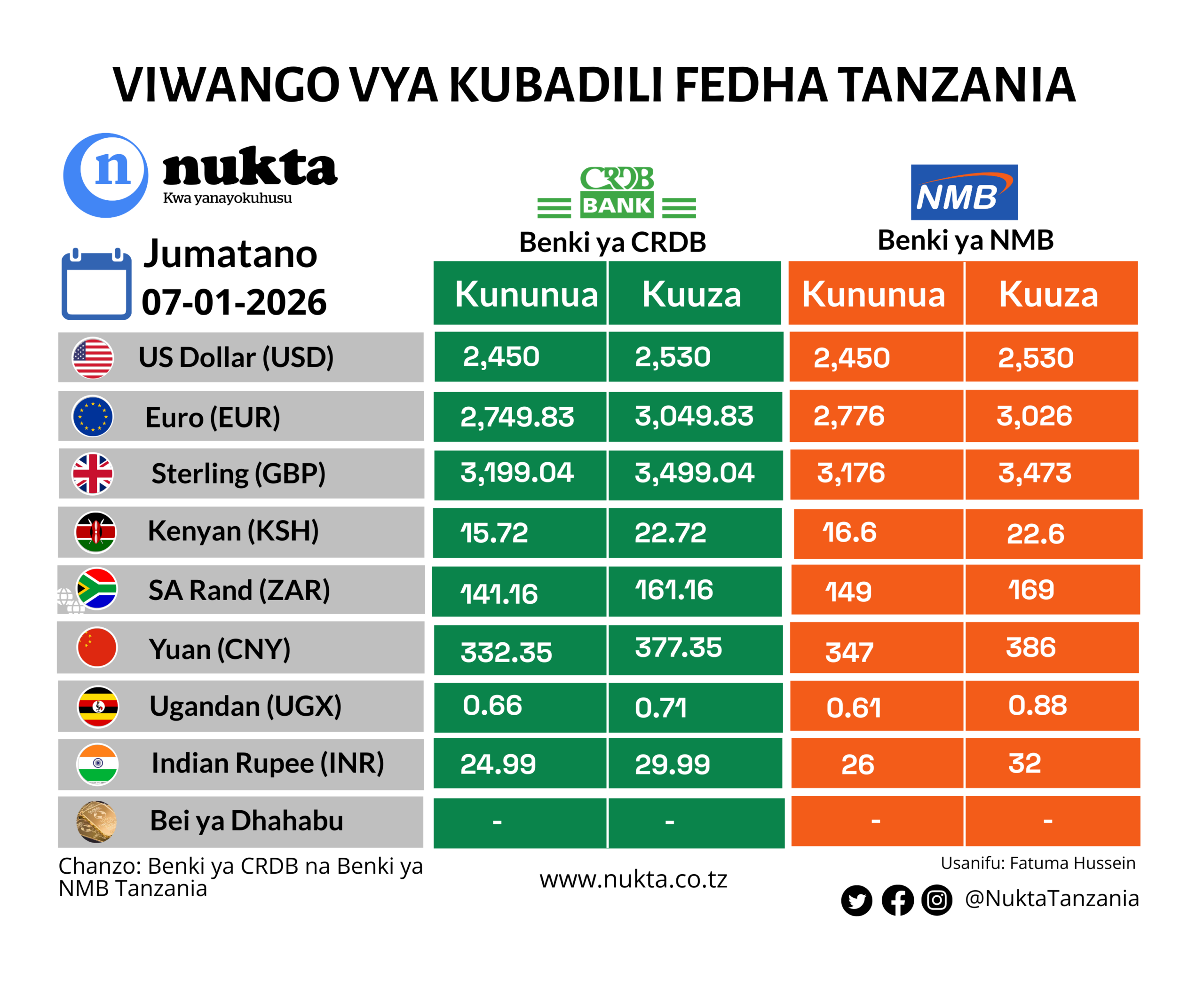 Viwango vya kubadilisha fedha Tanzania Januari 7, 2026