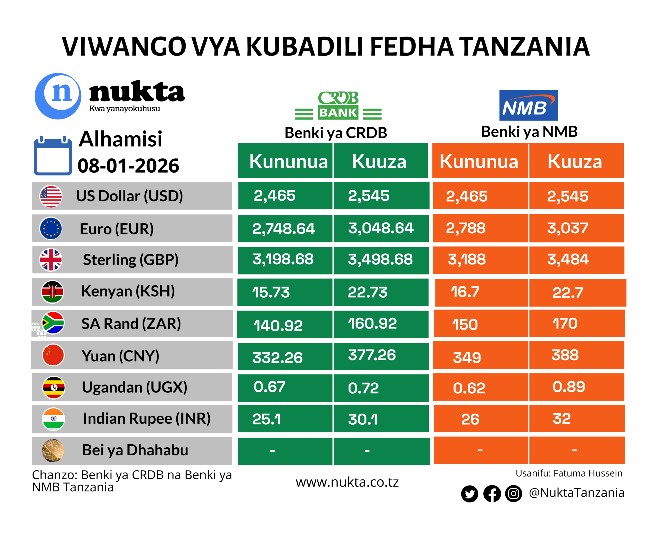 Viwango vya kubadilisha fedha Tanzania Januari 8, 2026