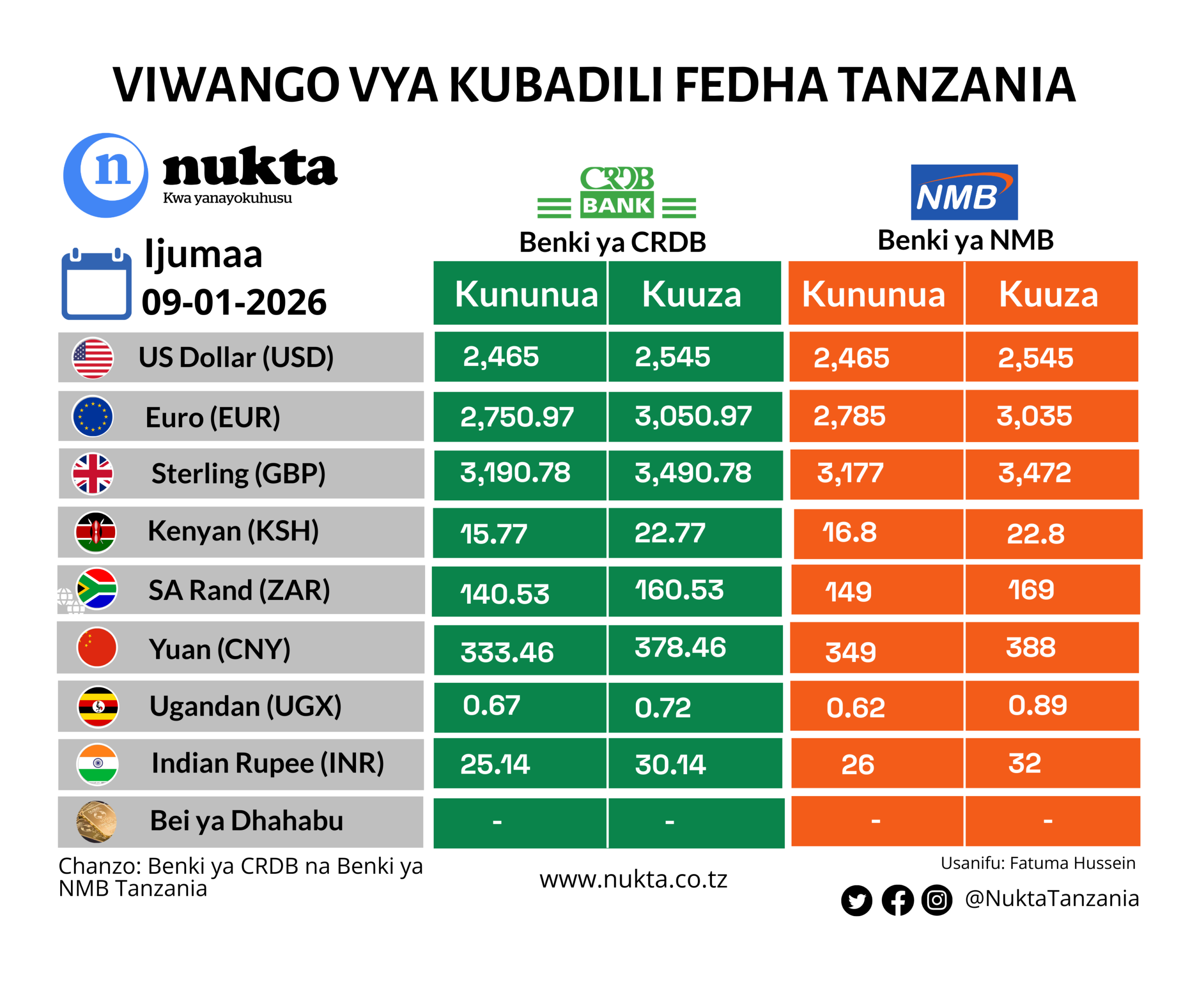 Viwango vya kubadilisha fedha Tanzania Januari 9, 2026