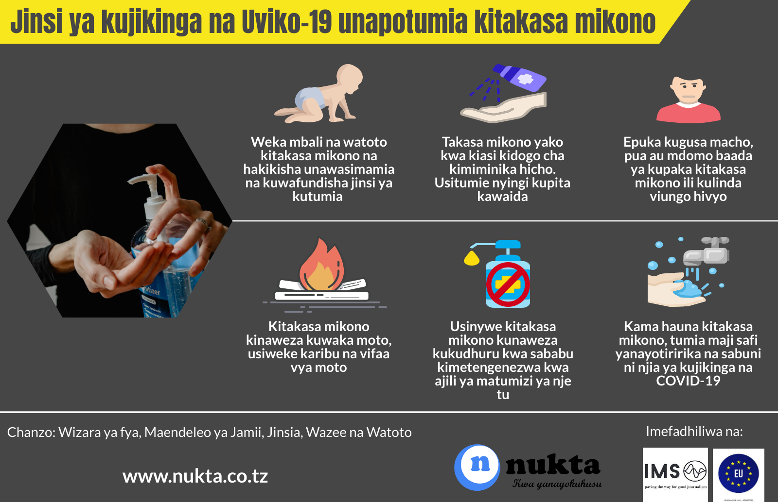 - Kitakasa mikono kikitumika vyema, ni afua dhidi ya virusi vya Uviko-19.