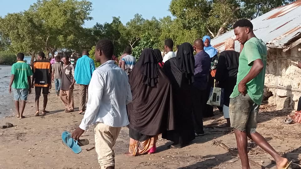 Baadhi ya wananchi kutoka maeneo mbalimbali ya Kisiwa cha Pemba wakiwa katika Bandari ya Chokocho wakisubiria ripoti kutoka kwa maafisa wa uokozi waliokwenda kutafuta miili ya watu waliozama na boti katika eneo la Kisiwa Panza Januari, 04 2022. Picha|Hassan Msellem, Pemba.